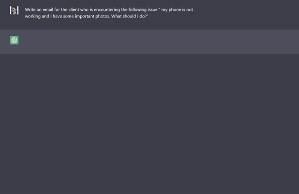 Write an email for the client who is encountering the following issue “ my phone is now working and I have some important photos. What should I do?”