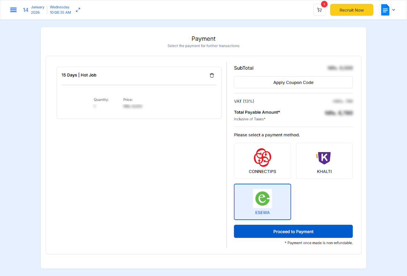 After successful payment, you can post jobs and start recruiting candidates.