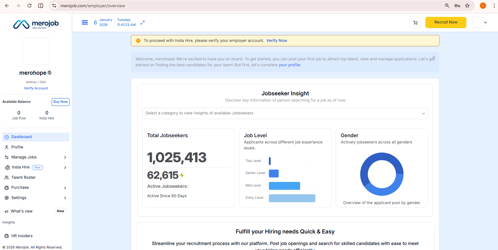 Here is the step by step employer guide that provides detailed guidance on creating an Employers account on Merojob, verifying your organization, purchasing jobs, posting packages. The guide helps you navigate the Merojob employer dashboard whether you are a small business, a corporate organization, or a recruitment agency and begin hiring faster with tools such as AI-generated job descriptions, Top Job and Hot Job postings, and the Insta Hire services.