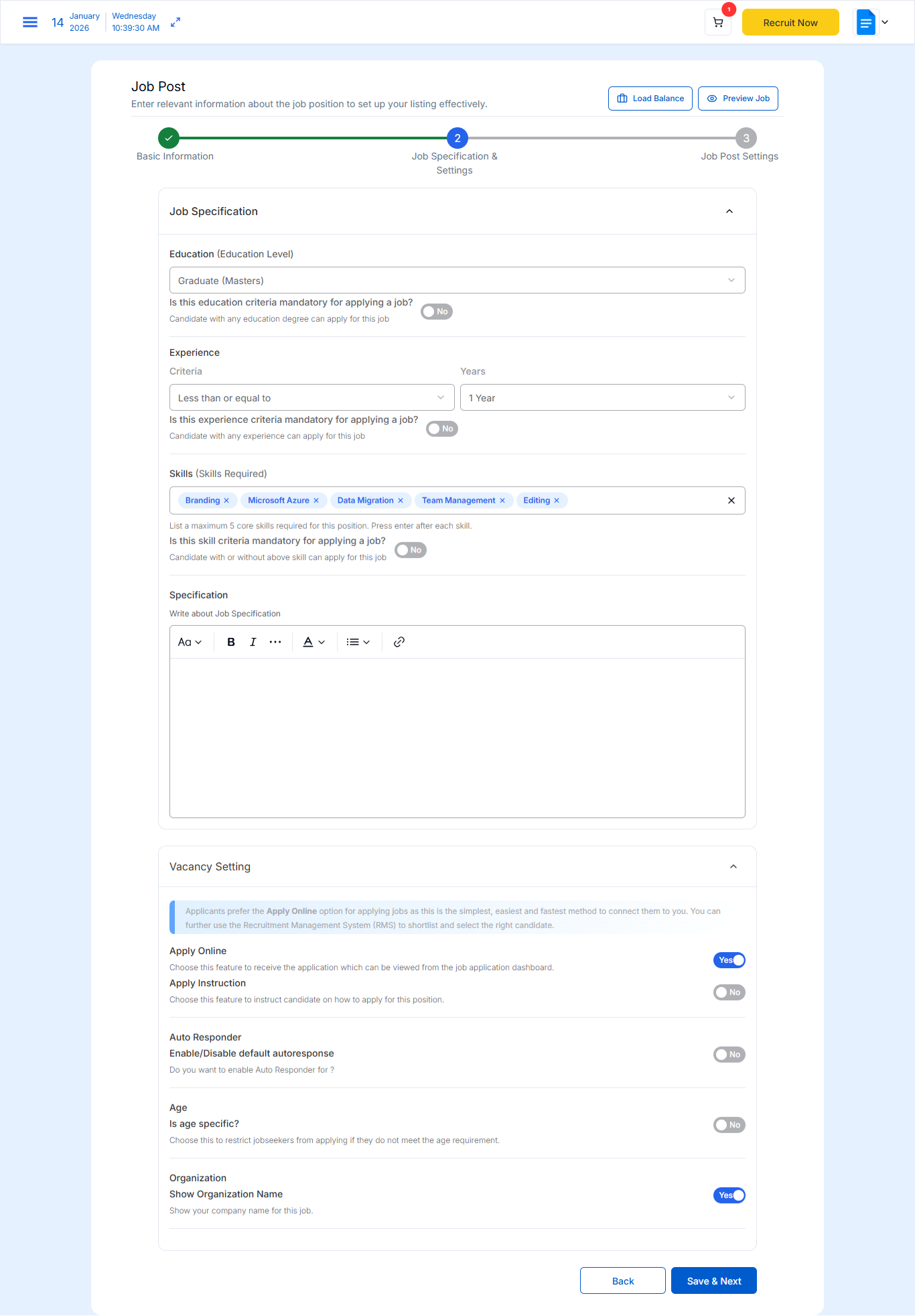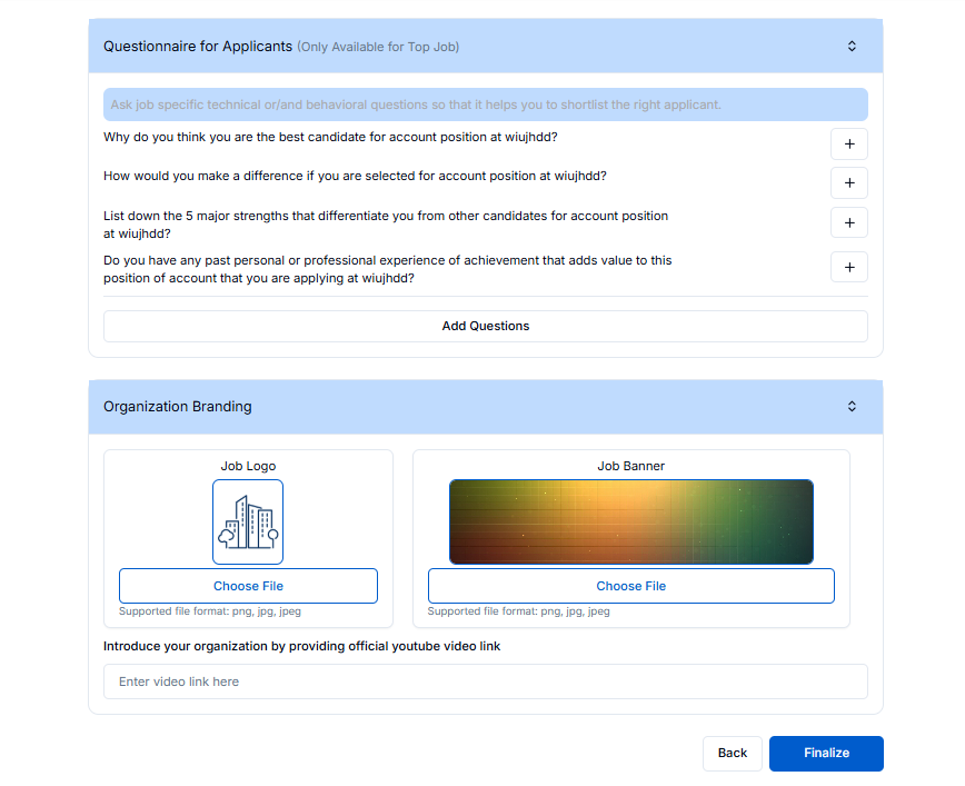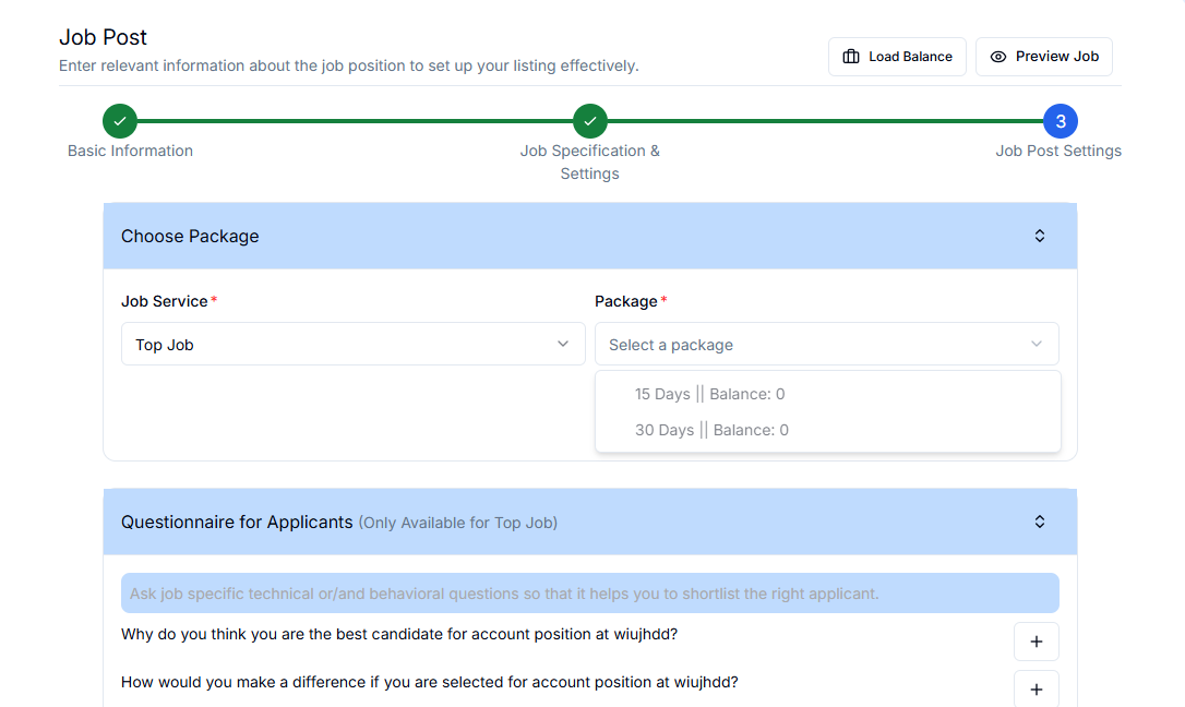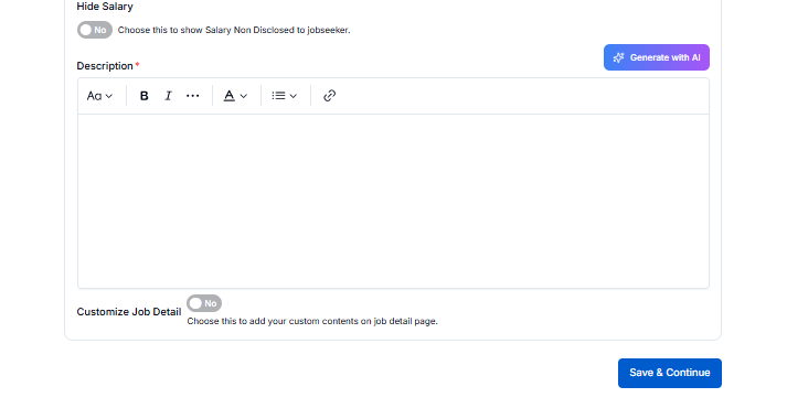 When you click the save button you redirect to the Job post page where you need to fill in all the required.