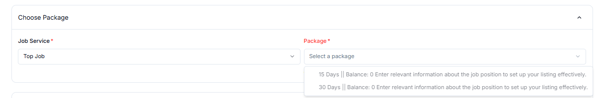 When you click save next button you redirect to this Job Post form where you choose.