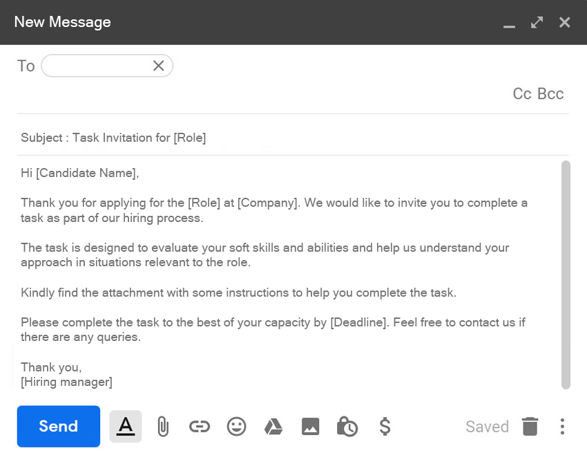 Employment screening is important to make the right decision so the second round could be all about testing the candidates either through tasks or interviews. Your intention should be clearly reflected in the email. For instance, if you are sending an email to assign a task, the email should clearly state so. Assigning tasks may be the least important for some job roles and less used in the context of Nepal, but if assigned details like deadlines and the purpose of the task must be mentioned.