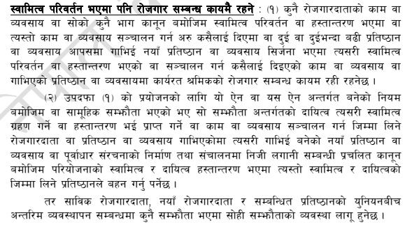 In case the authority/business is handed over to any other person through a business transfer, change in ownership, or any other reason, the existing employer/employee relationship will continue despite the change in ownership.