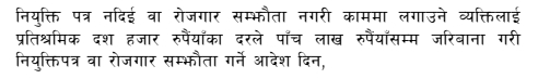 If any employee is being engaged in employment without executing a valid employment agreement, then such an employer shall be charged with a penalty of NRS. 10,000 and maximum up to 5,00,000.