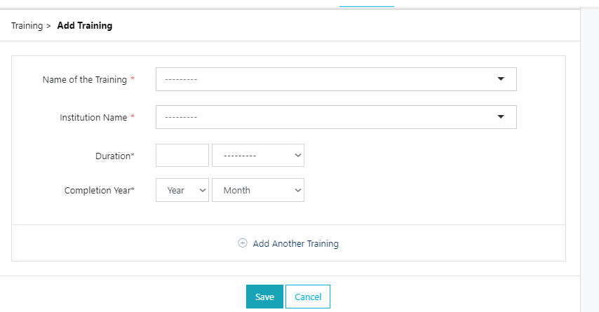If you have taken any training courses you might want to add to the training field. Click on add training and fill in the details if you have received more than one training.