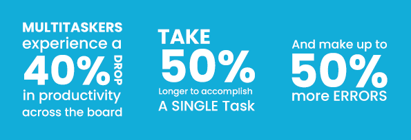 Multitasking may seem inevitable in our modern lifestyle. Doing more than one task at a time seems to get more done but it is not always the case. Constantly switching between tasks, especially when those tasks are complex and require undivided attention, makes the person become less effective and more likely to make errors. By focusing on one task at a time, you can perform better, get more done in less time and work smarter.