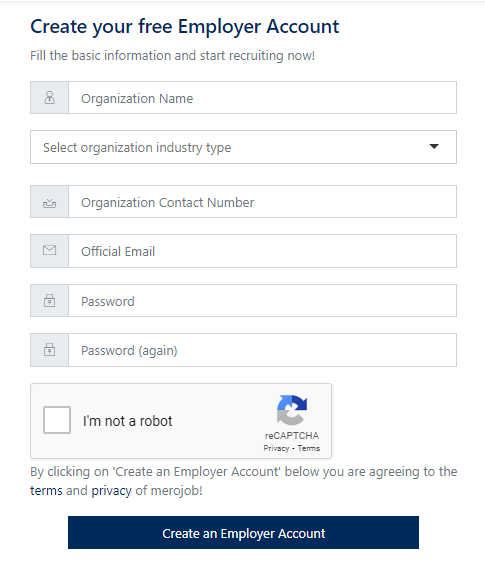 If you would like to register on merojob as an Employer, kindly follow the steps below: