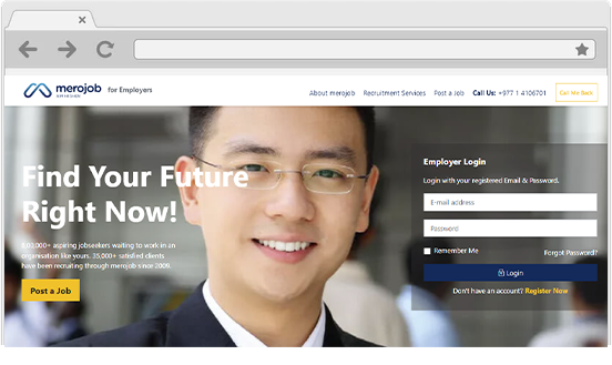 Whether you want to fill one position for more, merojob helps you find quality candidates. With more than 800,000 registered jobseekers from different industries, you can reach talents that would be the right fit for your company. To get started with using merojob to find the candidates you have to first register at merojob.