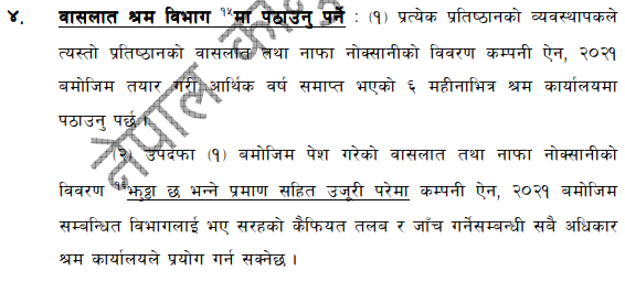 6. Has the information required by Section 4 of the Bonus Act, 2030 been given to the labor and employment office, including the financial statement and the money meant for the national welfare fund?