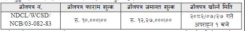 नेपाल टेलिकम वा.ग्रा.से.नि. छाउनी अन्तर्गत Pole and Cable Accessories and Supporting Items आपूर्ति गर्न सम्बन्धी बोलपत्र आह्वानको सूचना