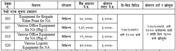 विभिन्न सामग्री खरिदको लागि बोलपत्र आव्हानको सूचना