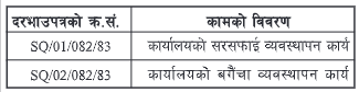 यस कार्यालयका लागि देहायबमोजिमको कार्य गर्नुपर्ने भएकोले इच्छुक योग्य फर्म वा कम्पनीहरूलाई यो सूचना प्रकाशित भएको मितिले १५ दिनभित्र यस कार्यालयबाट दरभाउपत्र खरिद गरी नियमानुसार यस कार्यालयमा पेश गर्नुहुन आह्वान गरिन्छ ।