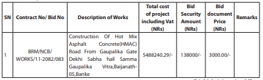 1. Baijanath Rural Municipality invites electronic bids from eligible bidders for the execution of below Mentioned works under National Competitive Bidding procedure