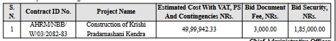 1. Apihimal Rural Municipality, Office of the Municipal Executive, Khandeshwori, Darchula, Sudurpashchim Province, Nepal invites electronic bids from Nepalese eligible bidders for the under National Competitive Bidding procedures.