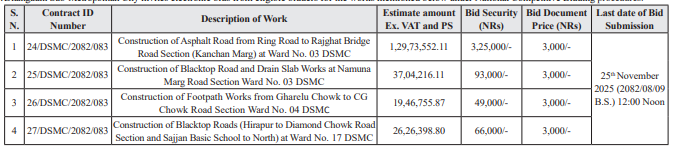1. Dhangadhi Sub-Metropolitan City invites electronic bids from eligible bidders for the works mentioned below under National Competitive Bidding procedures.