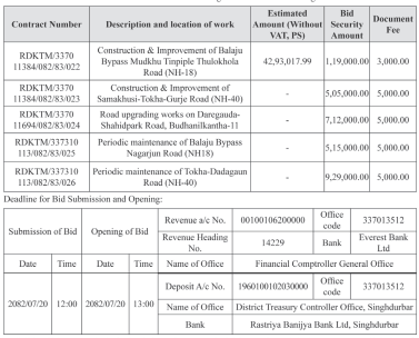 Road Division Kathmandu invites electronic bids from eligible bidders for following works: