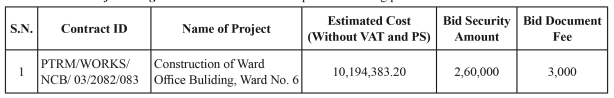 1. Panchpokhari Thangpal Rural Municpality invites electronic bids from Nepalese eligible bidders for the construction of following works under National Competitive Bidding procedures.