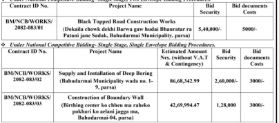 1. Bahudarmai Municipality invites electronic bids from eligible Nepalese bidders for Construction Works as mentioned below:-