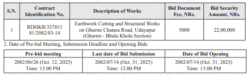 6. Eligible Bidders are advised to visit the PPMO's website www.bolpatra.gov.np/egp for further details or contact Road Division Harkapur, email: [email protected]