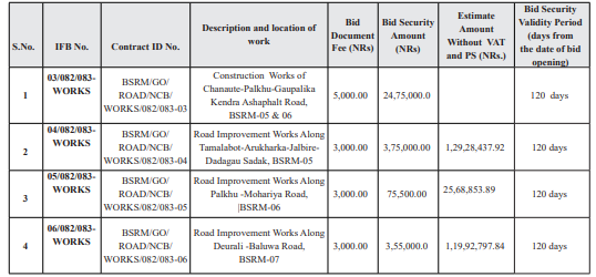 1. Barpak Sulikot Rural Municipality, Office of Rural Municipal Executive, Takukot, Gorkha invites online bids only under e-procurement system from eligible bidders for the construction of works as mentioned below;