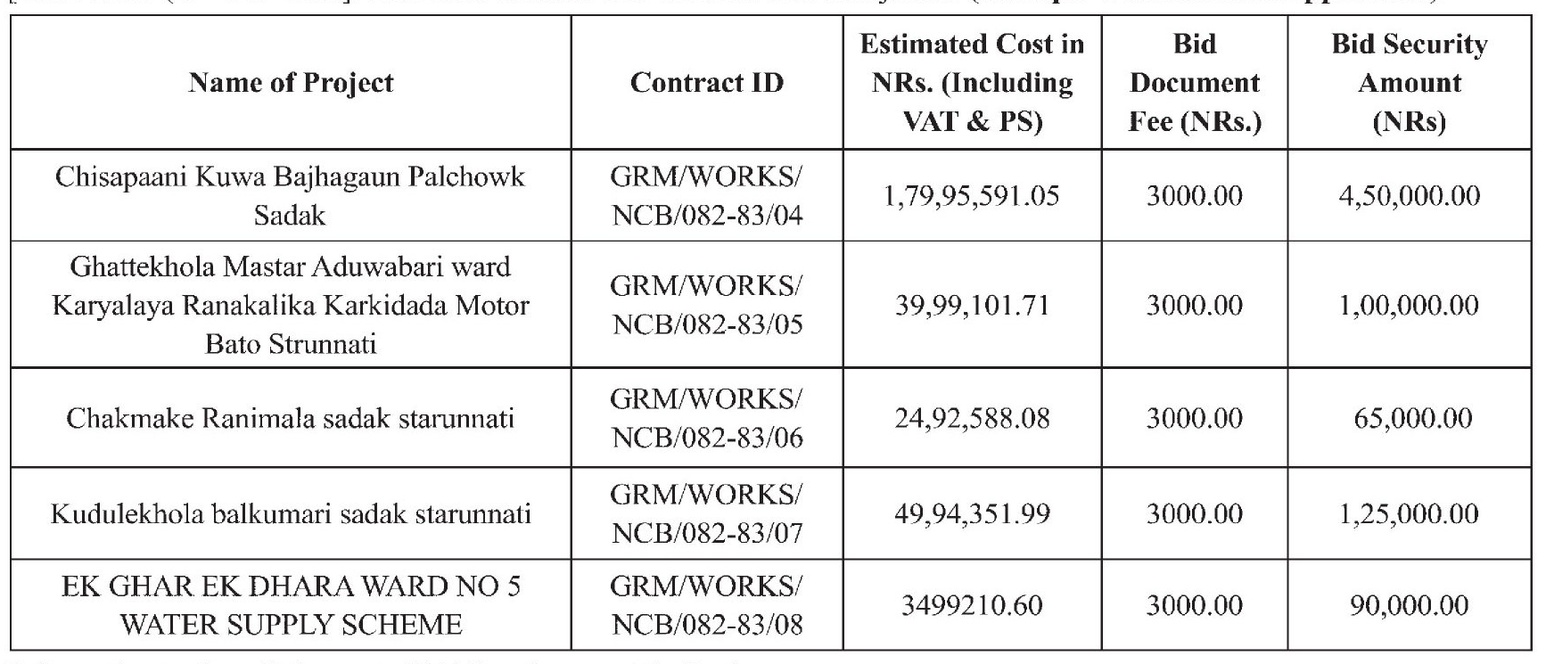 All information regarding the above mentioned can be obtained from PPMO's Website www.bolpatra.gov.np/egp or may obtain at office.