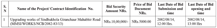 2) Bidder may download the bidding documents for e-submission from PPMO's Web Site www.bolpatra.gov.np./egp. Bidders should deposit the cost mentioned above of bidding document in the Project's Rajaswa (revenue) account and bid security fee Dharauti(Deposit) as specified below and the scanned copy (pdf format) of the Bank deposit voucher shall be uploaded by the bidder at the time of submission of the bids.