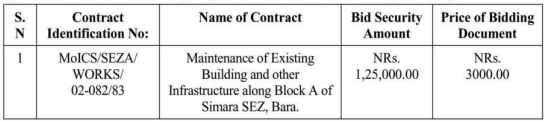Special Economic Zone Authority, Tripureswor, Kathmandu, invites only E-bidding as listed below: