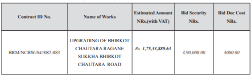 Bakaiya Rural Municipality, Hattisude, Makwanpur invites electronic bids from eligible bidders for below mentioned Construction Works under NCB bidding procedures as specified in Public Procurement Act and Regulations.