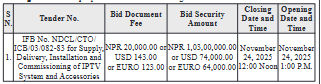 1. Nepal Telecom invites Electronic Bid from reputed and competent Bidders through 'Single Stage Two Envelope' procedure for the following tender.