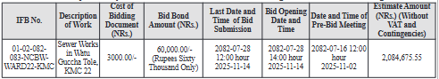 2. Kathmandu Metropolitan City Ward office 22 invites electronic bids from eligible bidders for the following works.