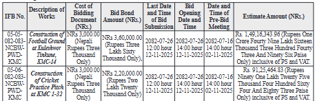 1. Kathmandu Metropolitan City, Office of the Municipal Executive invites electronic bids from eligible bidders for the following works.