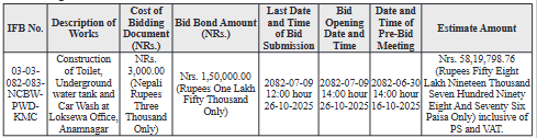 1. Kathmandu Metropolitan City, Office of the Municipal Executive invites electronic bids from eligible bidders for the following works.