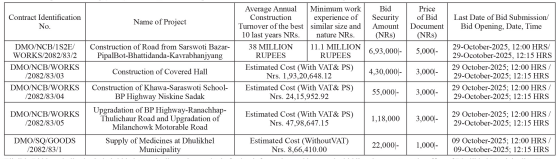 1. The Dhulikhel Municipality invites electronic bids only from duly eligible and qualified registered bidders for the procurement of the following construction works under National Competitive bidding (NCB)/ Sealed Quotation as specified in the Public Procurement Act and Regulation.