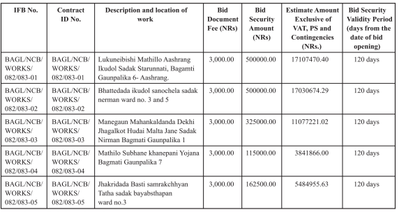 1. Bagmati Rural Municipality, Office Of Rural Municipal Executive, Bhattedanda, Lalitpur Invites Online Bids Under E-procurement System From Eligible Bidders For The Construction Of Works As Mentioned Below;