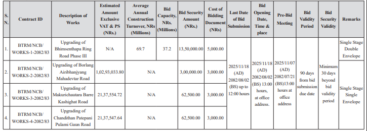 1. Bhimsenthapa Rural Municipality, Office of the Rural Municipal Executive invites electronic bids from eligible bidders for the following work as listed below.