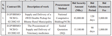 1. The Bhume Rural Municipality invites only electronic bids from Eligible Bidders for the Following Goods under Following Procurement Method.