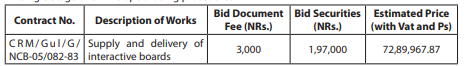 1. The Office of Chhatrakot Rural Municipal Executive, Choyaga, Gulmi invites electronic bids from Nepalese eligible bidders for work as mentioned below under National Competitive Bidding- Single Stage one Envelope Bidding procedures.