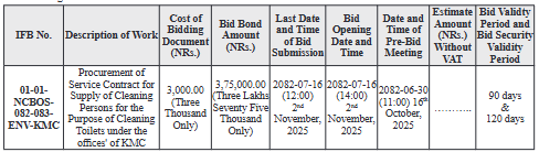 2. Kathmandu Metropolitan City, Office of the Municipal Executive invites electronic bids only from eligible bidders for the following works.