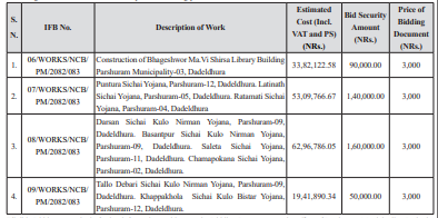 1. Parshuram Municipality, Jogbuda, Dadeldhura, invites electronic bids from Nepalese eligible bidders for the construction of following contract under National Competitive Bidding procedures.