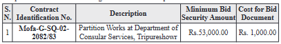 Invitation for Sealed Quotation for the procurement of Partition Works at Department of Consular Services, Tripureshowr.