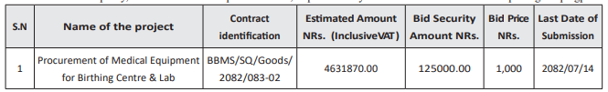 Bodebarsain Municipality Invites Only electronic bids from Nepalese eligible bidders for the Following Projects under Sealed Quotation procedures. Eligible Bidders may obtain further information and inspect the Bidding Documents at the office of Bodebarsain Municipality, Office of the Municipal Executive, Saptari or may visit PPMO website www.bolpatra.gov.np.egp.