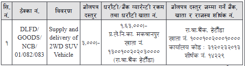 यस निर्देशनालयको चालू आ.व. २०८२/०८३ को स्वीकृत कार्यक्रम अनुसार गाडी खरिद कार्य गर्नुपर्ने भएको हुँदा इजाजत प्राप्त आपूर्तिकर्ताले यो सूचना प्रकाशित भएको मितिले ३० (तीस) दिनभित्र विद्युतीय बोलपत्र पेश गर्न आह्वान गरिन्छ । बोलपत्र सम्बन्धी विस्तृत विवरण सार्वजनिक खरिद अनुगमन कार्यालयको वेबसाइट www.bolpatra.gov.np/egp मा हेर्न र डाउनलोड गर्न सकिनेछ । पूर्ण सूचनाका लागि यस निर्देशनालयको वेबसाइट dolfd.bagamati.gov.np हेर्न अनुरोध छ ।