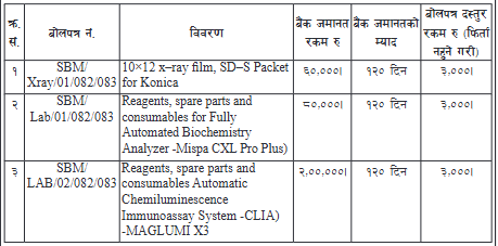 X-ray film र Lab Reagents खरिद सम्बन्धी विद्युतीय बोलपत्र आह्वानको सूचना