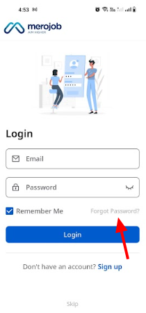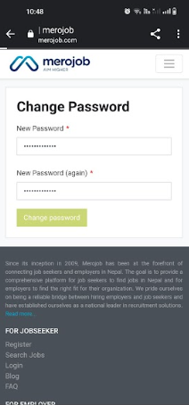 Once you've clicked the verification link, you'll be directed to a page where you can set a new password for your Merojob account.