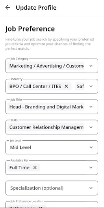 Your merojob profile is now refreshed and ready for job applications. Utilize your updated profile to maximize your job search success!