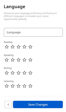 Add all known languages, rating fluency in reading, writing, speaking, and listening.